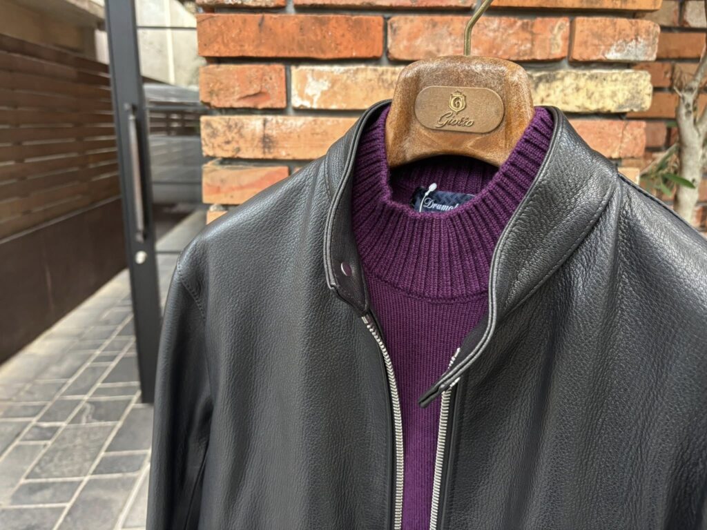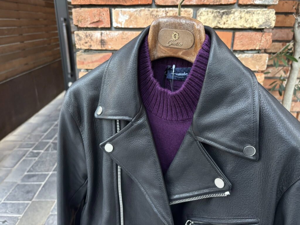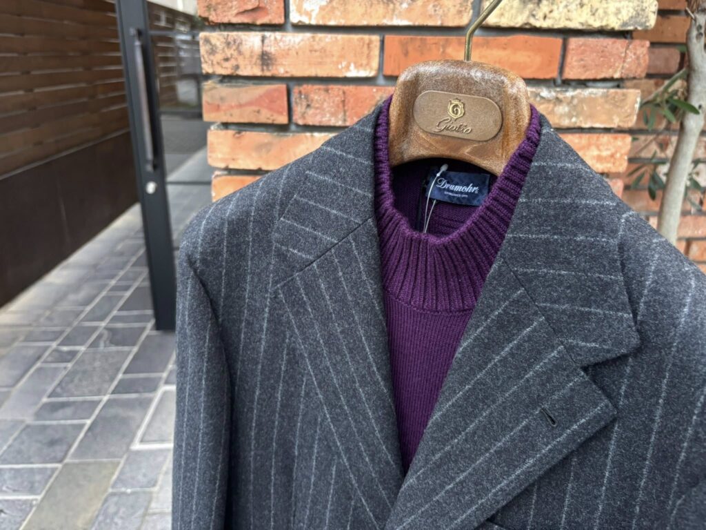 差し色にパープルは如何でしょう?!この後も入荷のHERNO(ヘルノ)や、hevo(イーヴォ)のコートのインナーにも合わせ易いと思います。9月も終わり、10月となります。今後の入荷が気になるところですが、こちらは唯一無二な存在だと思います。