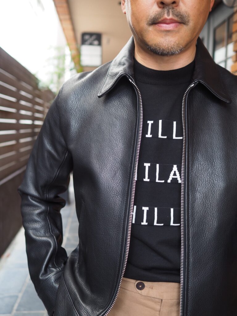 襟付きにするとグッと大人な落ち着きが出てきますね。シボ革がまた高級感を引き立たせます。