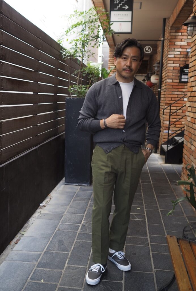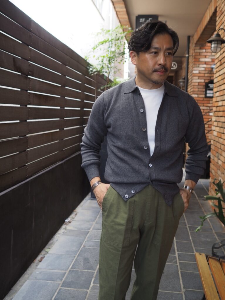 今日はVandoriのカーディガンに合わせてみました。様々なニットやシャツ、ジャケットなんかにも合いそうなので今後のコーディネートが楽しみです!