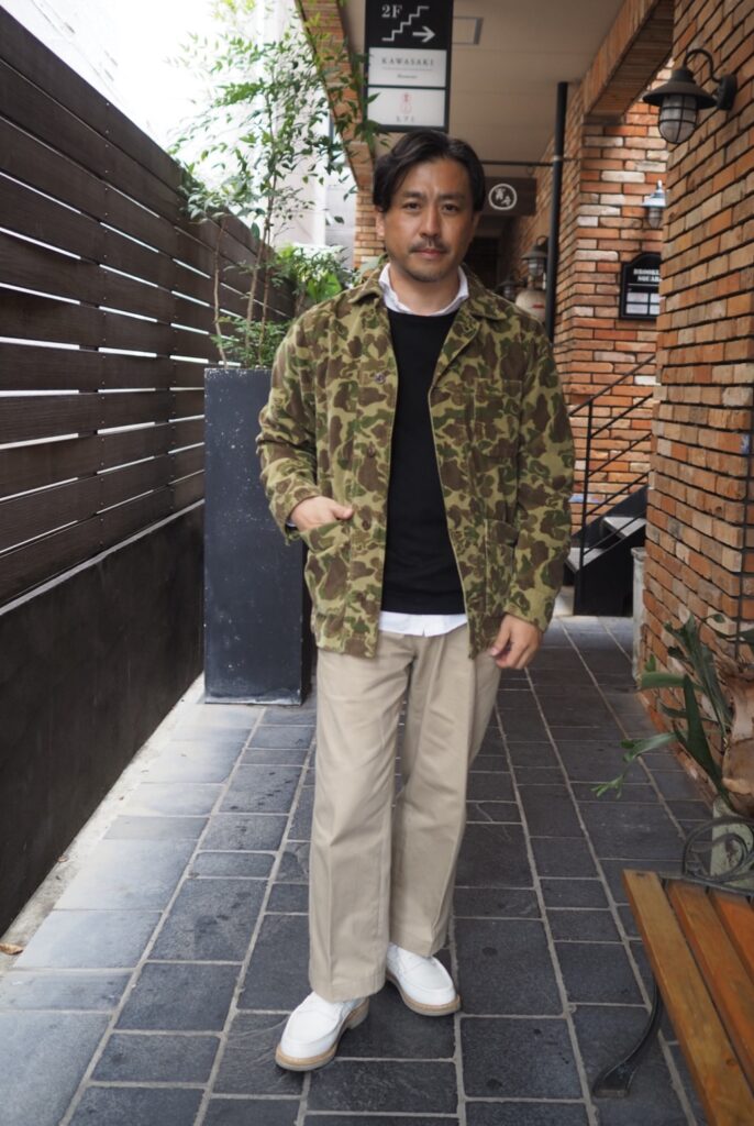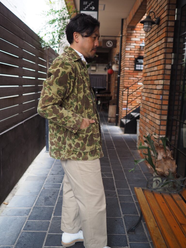 フォッグスキン カモフラ柄 カバーオール、これを羽織ればオシャレさんって感じです。