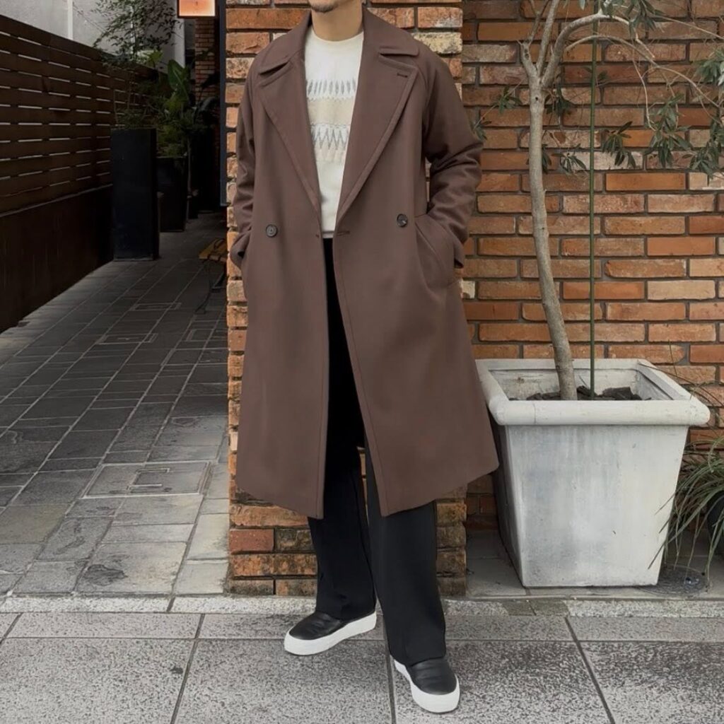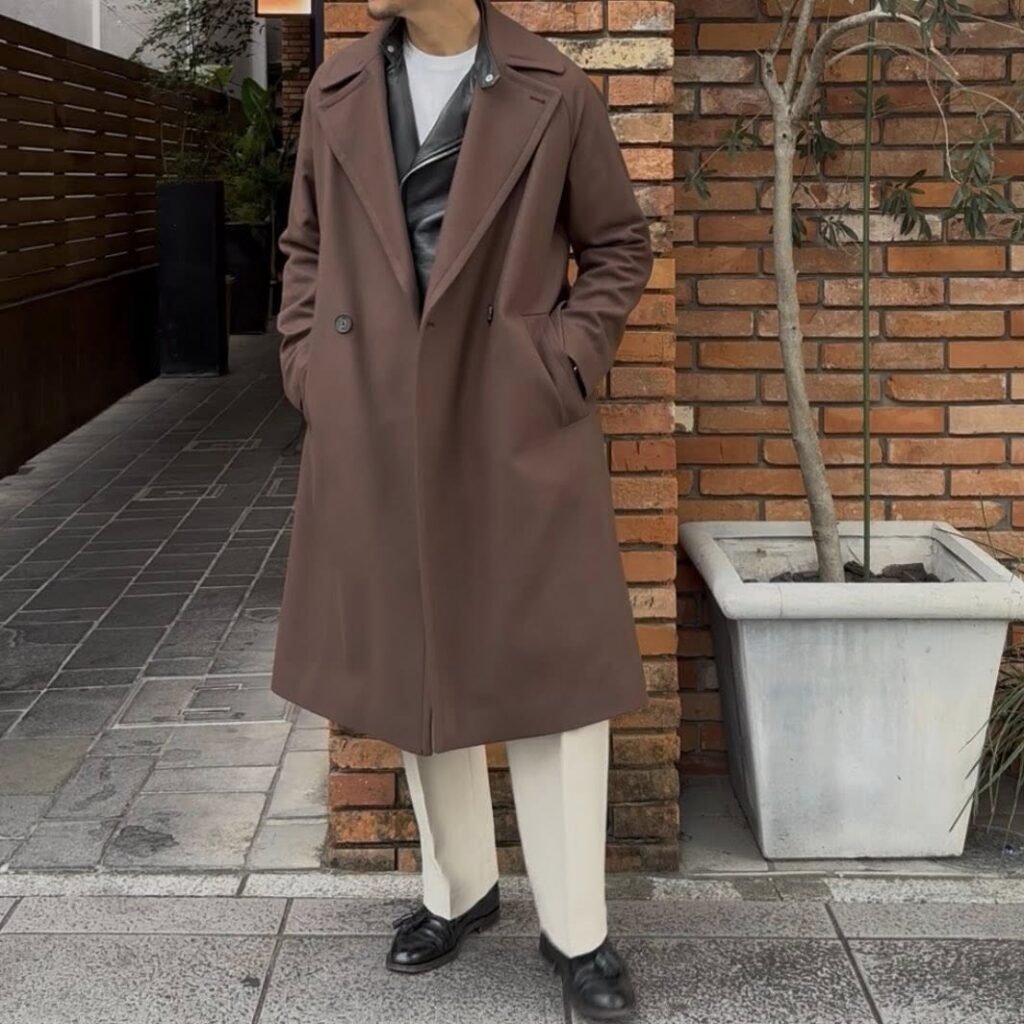 hevo(イーヴォ)の定番コート、ブリンディジが届きました。上質な素材とゆったりとした独特なシルエットが存在感を放つロングコート。産まれて初めて刈りとられた柔らかく高い保温性が魅力の「ヴァージンウール」で作られたメルトン生地。こちらを使い作られたダブルフロントのベルテッドコートです。ラグランスリーブとゆったりとしたシルエットのコートは、hevoならではの独特なシルエットを生み出し、現代のスーツスタイルにも合う、コンテンポラリーな雰囲気が漂うデザインに仕上げられています。もちろんカジュアルスタイルとの相性もいいので、スタイリングをお楽しみください。