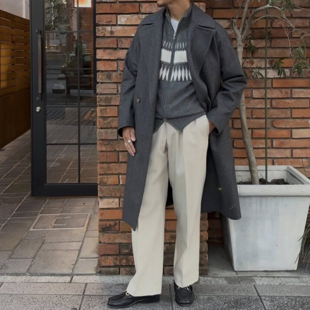 トーンオントーンでパンツは、ライトベージュに。明日は、ブラウンのトーンオントーンをご紹介予定。