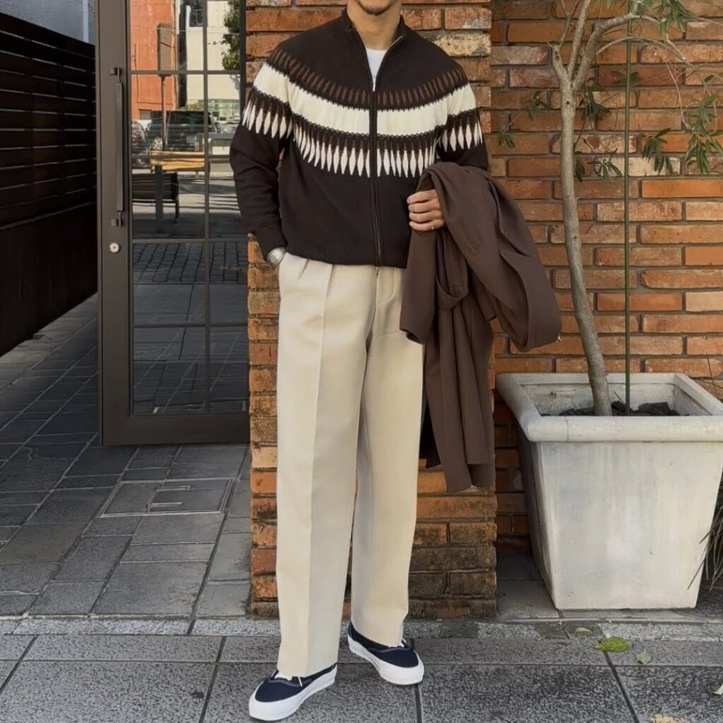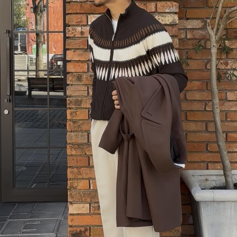 Vandori(ヴァンドリ)求心柄 ジップブルゾン ウールカシミヤ【グレー・ブラウン】