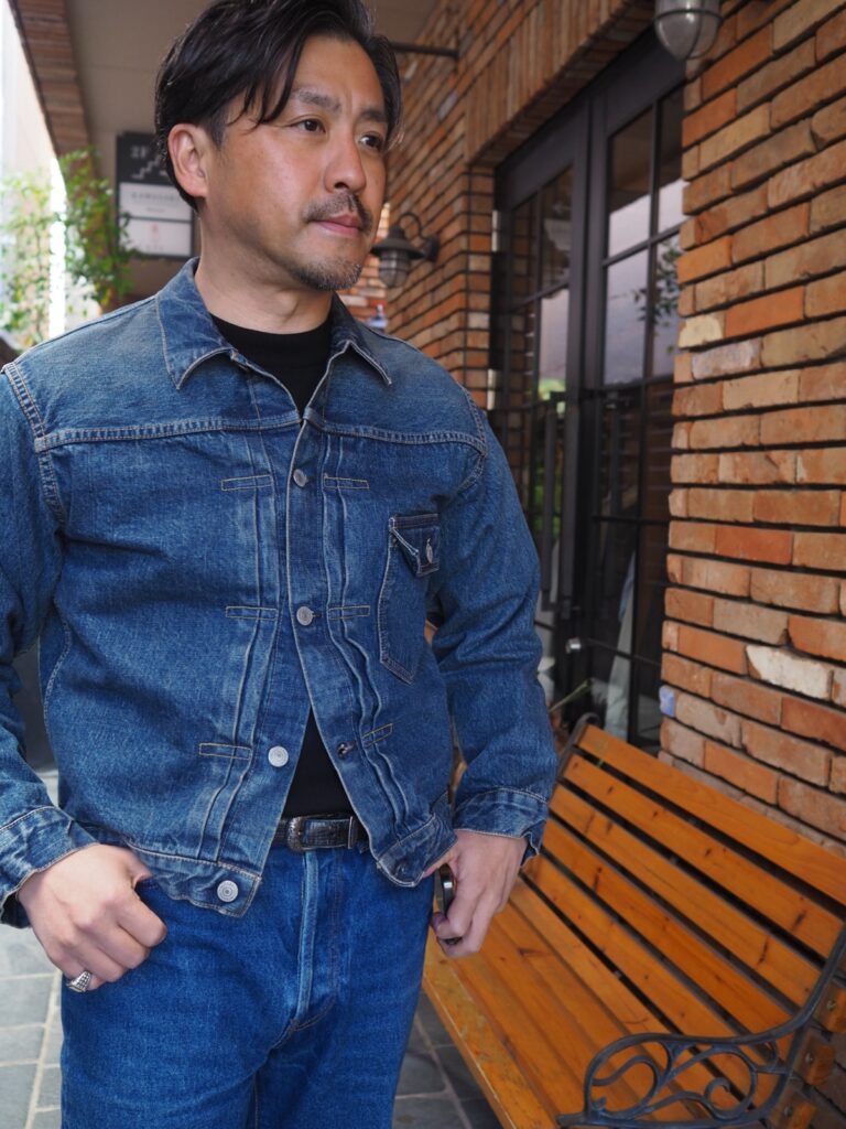 最近アウターの重ね着としてGジャンを挟むことが多いです。コートの下やバブアーの下に重ね着するといい感じなんですよね。