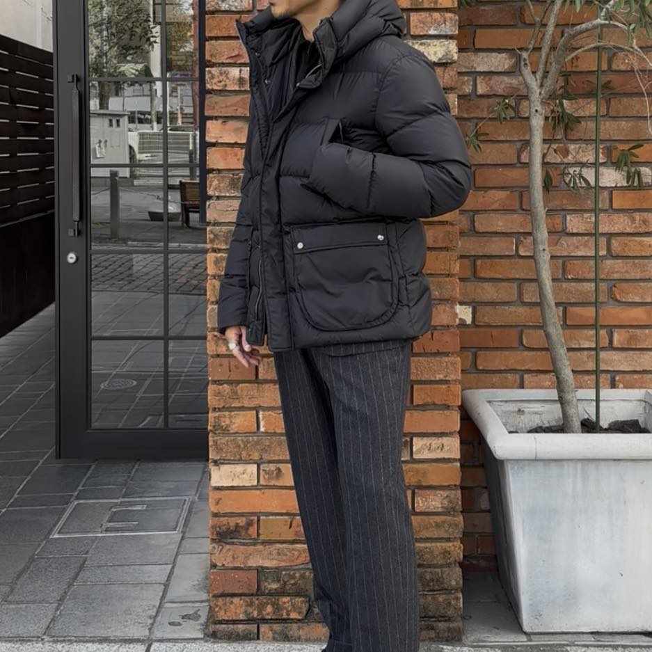 近年HERNO(ヘルノ)を代表するダウンブルゾンになる、強撥水・防寒・軽量を兼ね備えたダウンライン”POLAR-TECH”のフード付きダウンブルゾン。大き目のマチ付ポケットと、上品な素材に映えるメタルボタンが特徴。従来ブルゾンモデルと比較すると、着丈が若干長く、ややゆったりとしたシルエットでモダンな仕上がりとなっています。着用は、カジュアルから、スーツにも合わせられるデザインとなっています。