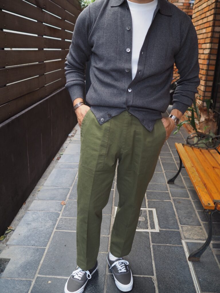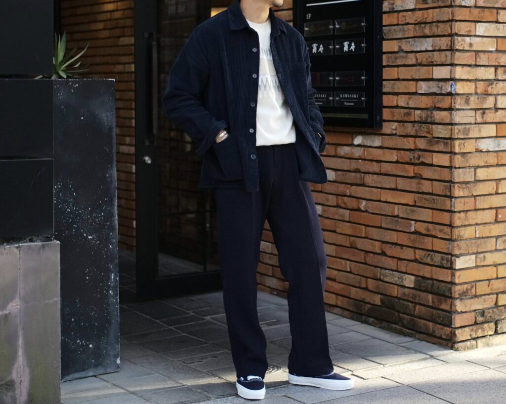 足元は、スニーカーはもちろん、ラバーソールの革靴であれば相性は良さそうです。(WHやパラブーツなど)