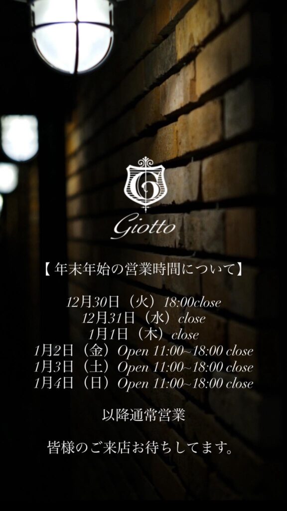 【 明日が年内最後の営業日 】2025.12.29 Takuya MiyaharaGiotto 宮原です。本日も多くの方にご来店いただきありがとうございました。年内は、明日が最後の営業となります。18:00時までとなりますので、何卒よろしくお願いいたします。それでは明日のご来店、お待ちしてます。TagsShare Takuya Miyahara / Store manager・Buyer皆様のご来店、お待ちしてます。 Instagram