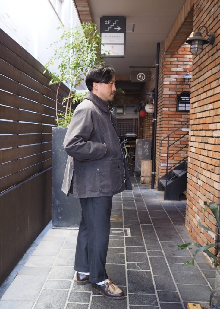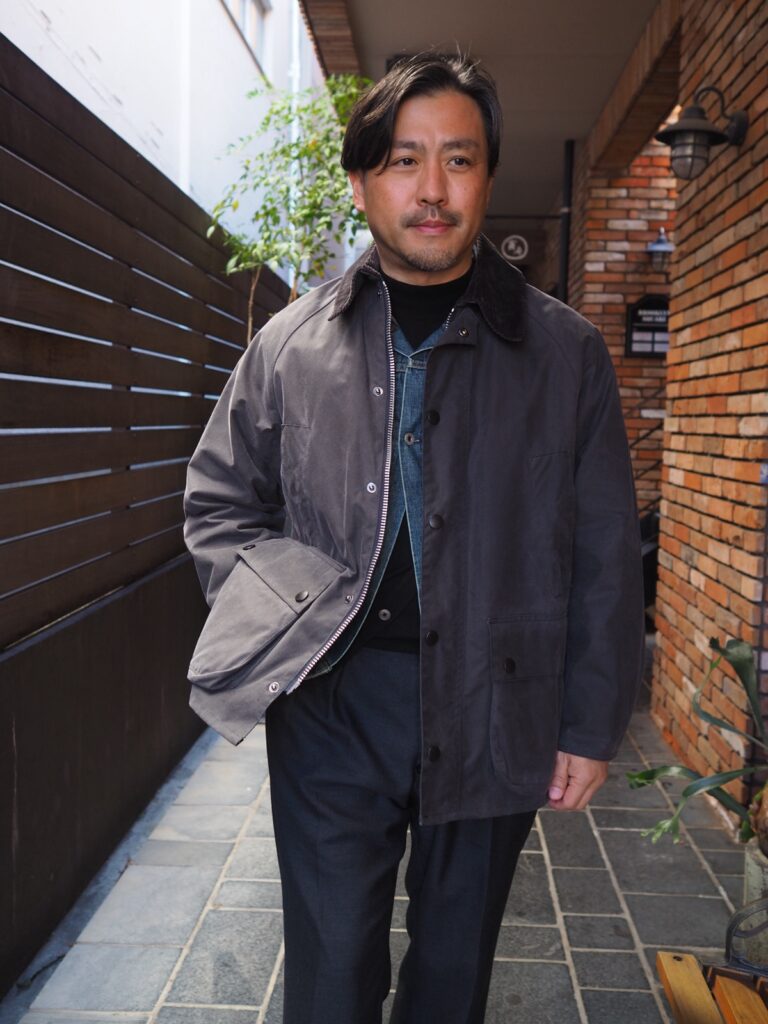 なんなんでしょう。バブアーって本当にかっこいい。土臭くて無骨な感じなのに何故かかっこいいし、何にでもコーディネートできちゃう。しかもオシャレさんに一瞬で変身できる。