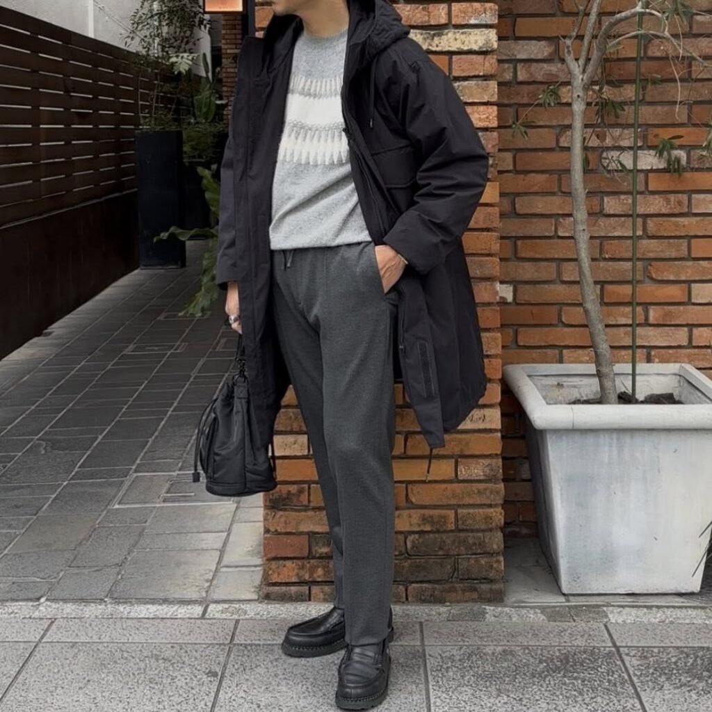 そんな本日は、先日入荷したgiabs(ジャブス)のパンツと、残り1着のHERNO(ヘルノ)のモッズパーカでスタイリングしてみました。