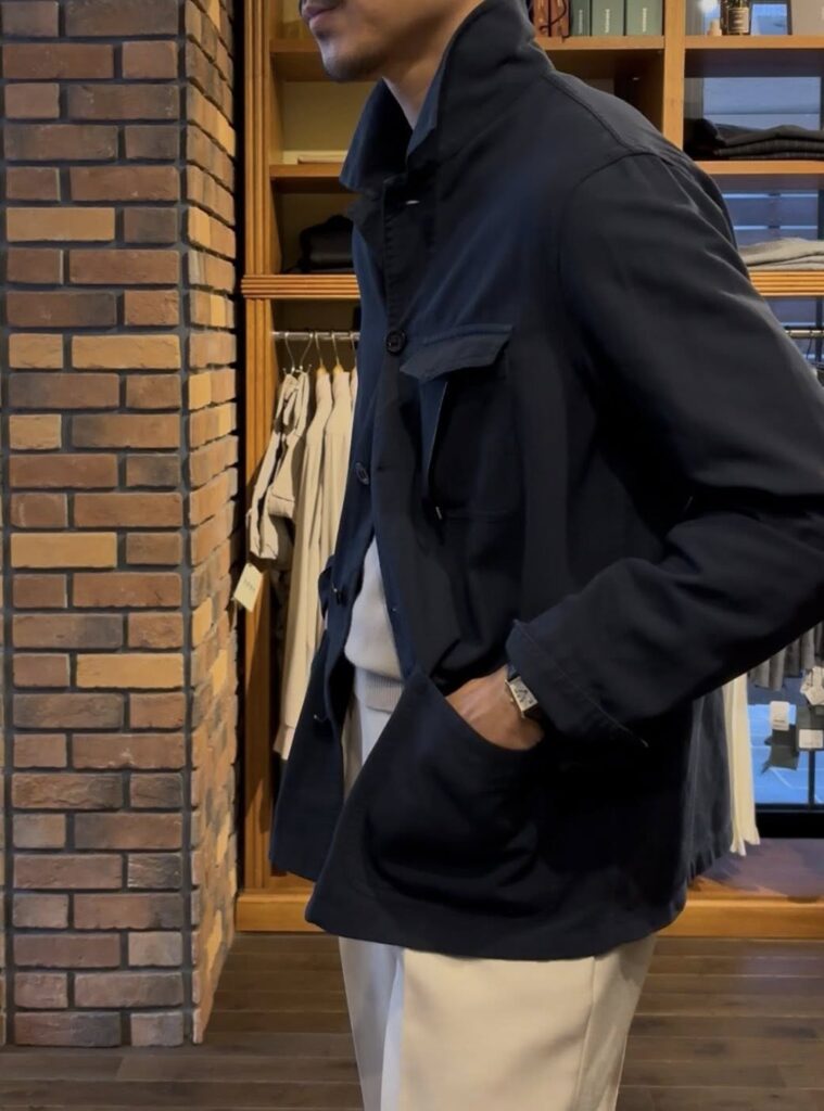 1900年代初頭ブレシア地方で誕生して以来、サルトリア(仕立屋)として100年以上も愛される老舗ブランド“BOGLIOLI(ボリオリ)”は、「クラシック&モダン」をコンセプトに、イタリアン・テーラリングの革新的な技術と、時代を掛け合わせたコレクションを提案しており、上質なファブリックを損なうこなとく丁寧に仕立て上げられたアイテムたちは、スーツやアウターのどれをとっても男性の魅力を引き上げてくれます。ローコストへの需要が高まる近年でも、ラグジュアリーな体制を崩すことなく一線で活躍しています。世界中から支持を得るBOGLIOLIは、これまでのヒストリーを大切にしながらもコレクションブランドとして進化し続けていきます。と、ブランド説明はこんな感じで、今回、私がセレクトしたのがこちらになります。今日は、風が強く室内での写真で失礼します。