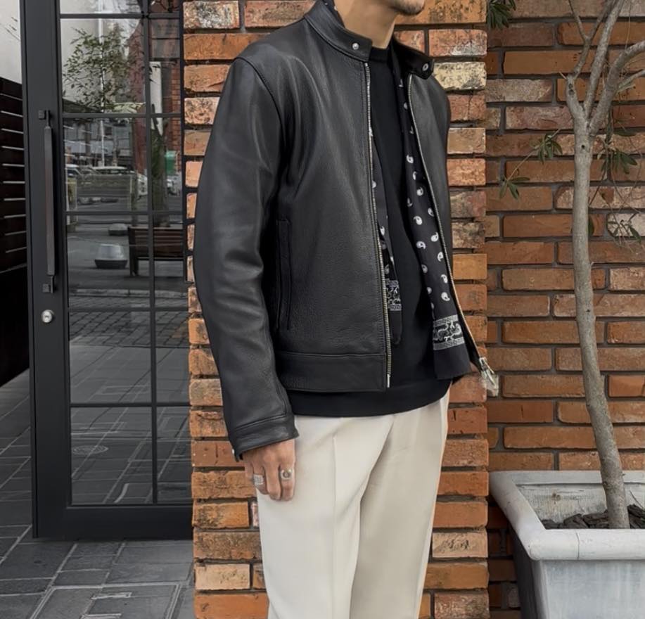 CINQUANTA(チンクワンタ)シングルのライダースにも相性は良さそうです。