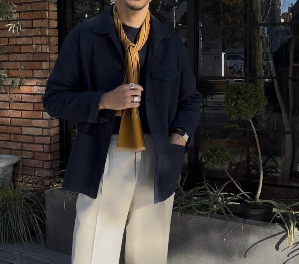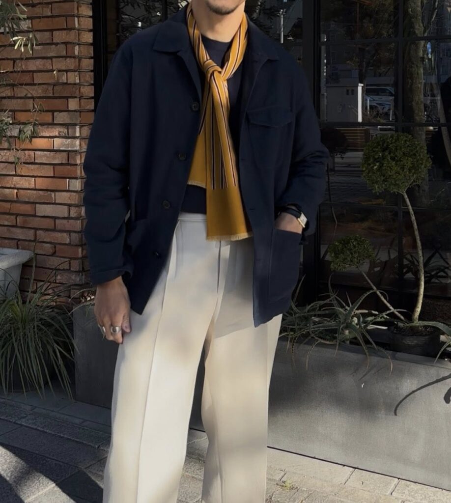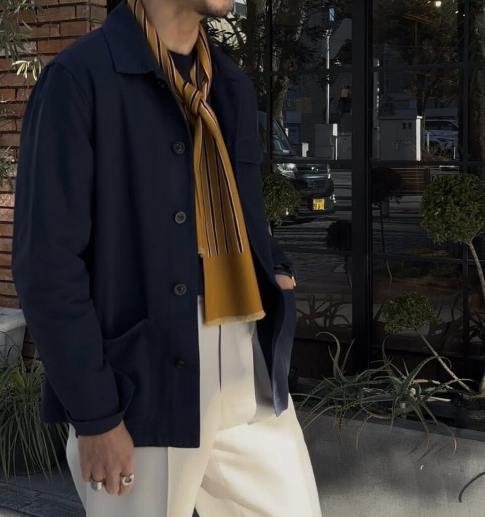 そのジャケットに、Bleck(ブレック)のストールを合わせて。