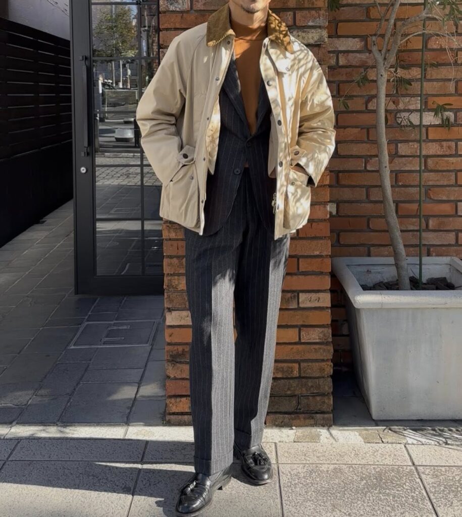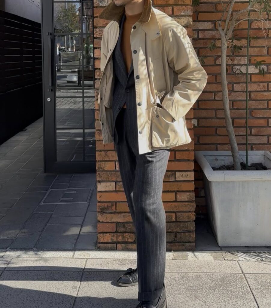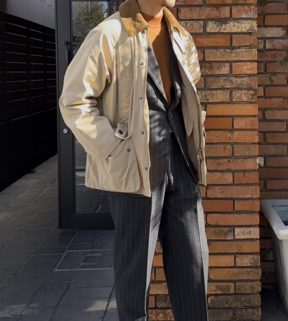 コレからの時期に一番重宝する、Barbour(バブアー)のピーチスキン素材を使用したジャケット。
