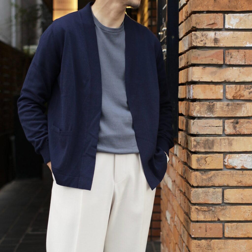 GRAN SASSOより、コットンニットシリーズが届いています。本日紹介するのは、定番モデルのボダンレスカーディガン。 春、夏、秋に適したコットンニットカーディガンとなります。柔らかで着心地の良いGRAN SASSOでは定番の、12ゲージソフトコットン を採用したモデルとなります。コットンですので、気軽に着られて、Tシャツやシャツなどとの組み合わせが楽しめます。程よくゆとりのあるシルエットとボタンレスの仕様が着こなしに絶妙な抜け感とモダンな印象となる、大人な1着です。今、カーディガンをお探しの方は是非このボタンレスカーディガンをおすすめします。ジャケット代わりに羽織るのもいいですね。
