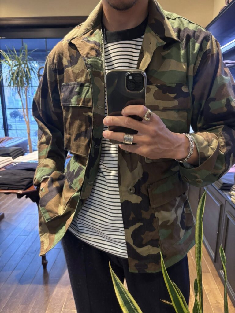 春はミリタリーのアウターに合わせたり、デニムジャケット(Gジャン)との組み合わせも楽しめます。夏は一枚で決まる便利なアイテムですので、気になる方はお早めに。