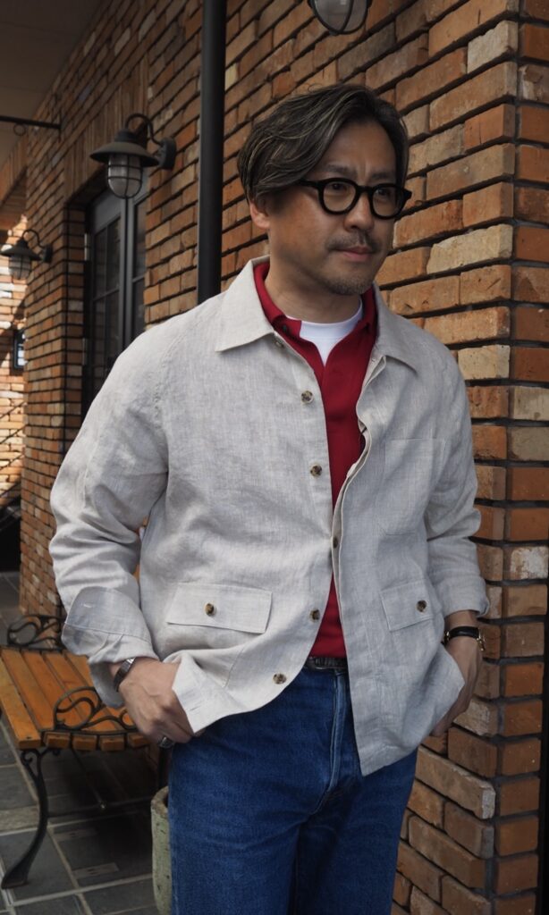 やっと初夏らしくなってきました。でもまだ朝晩は涼しかったりして半袖、ショーツって訳にはいきませんよね。こんな季節はやはりリネンの羽織ものがマストです。