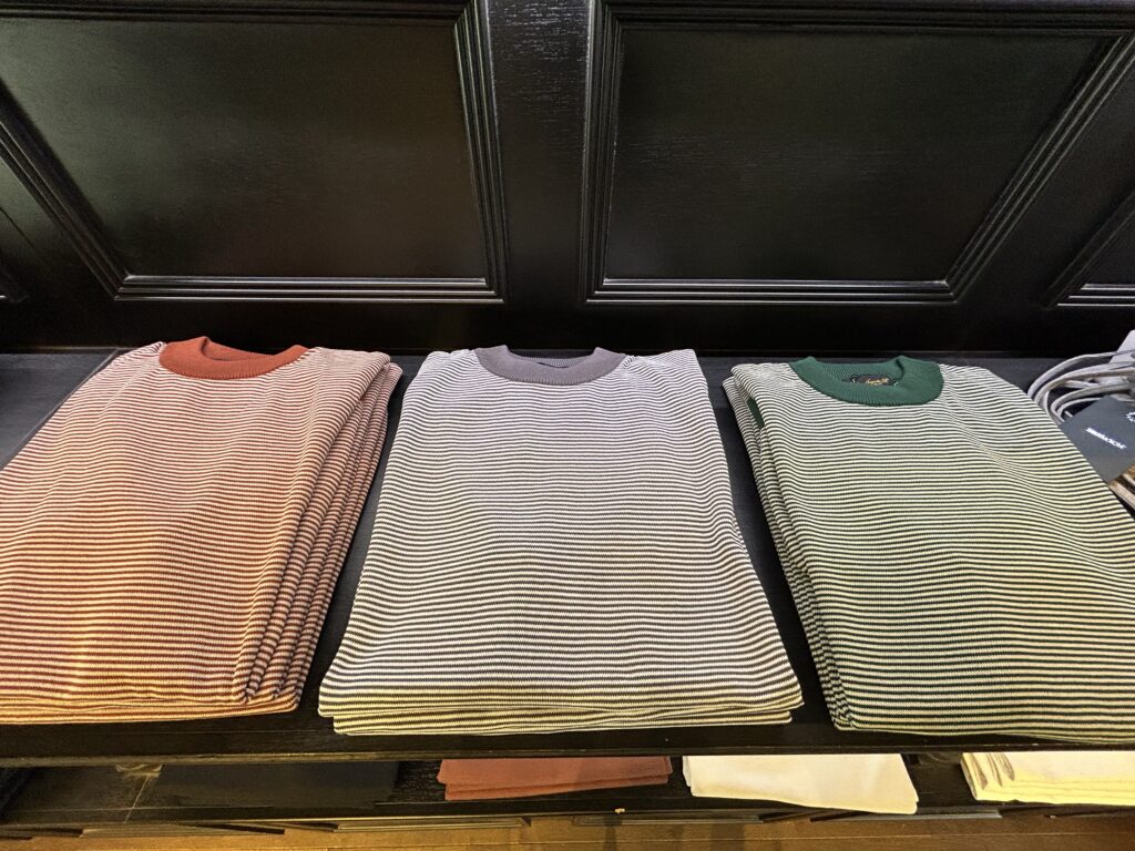 色々なコーディネートが楽しめそうです。ボーダーのピッチも狭いので色々な重ね着も容易に出来ますね。