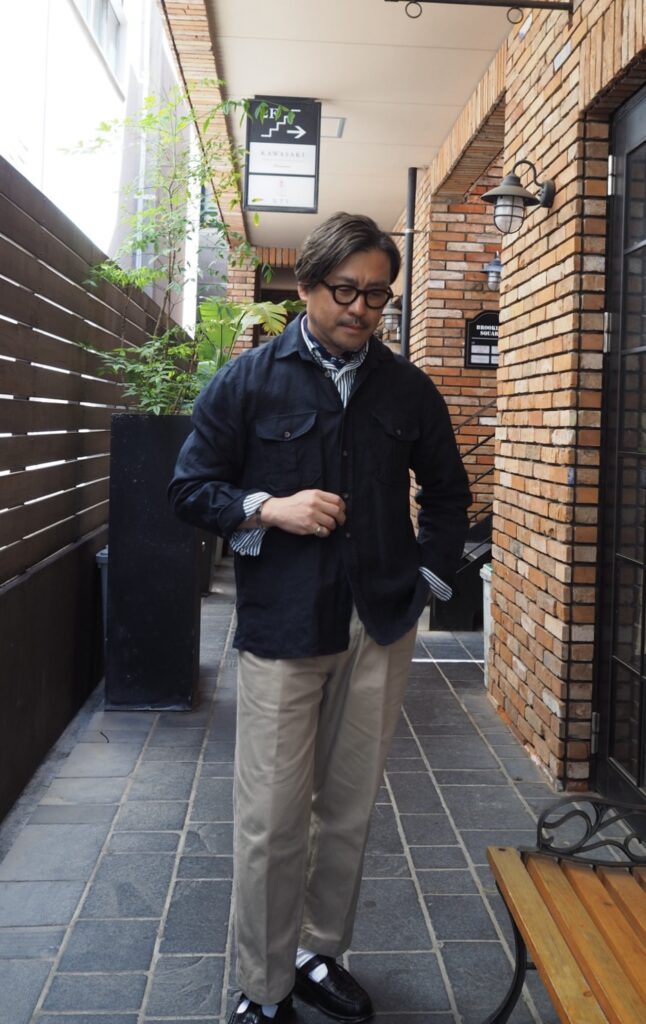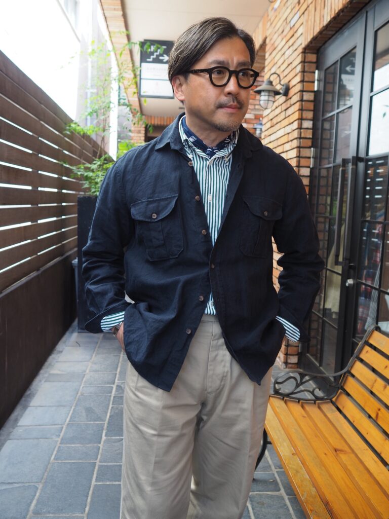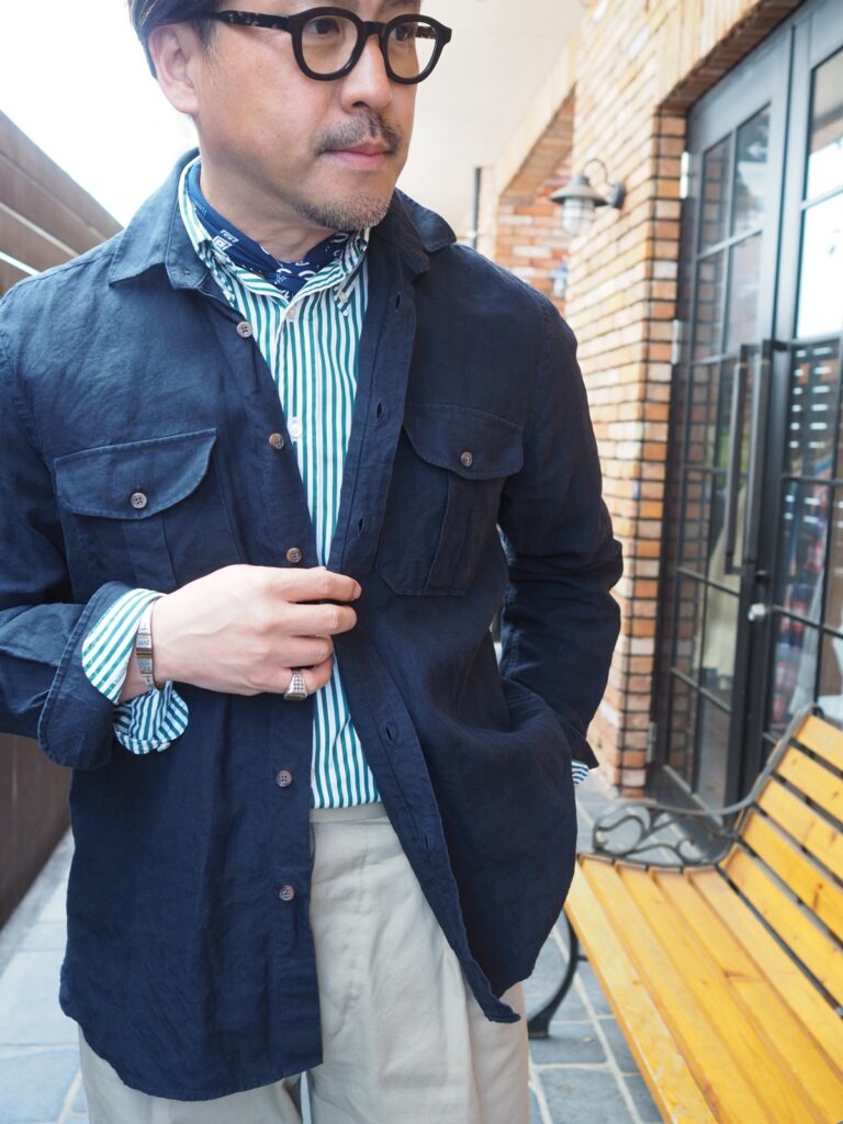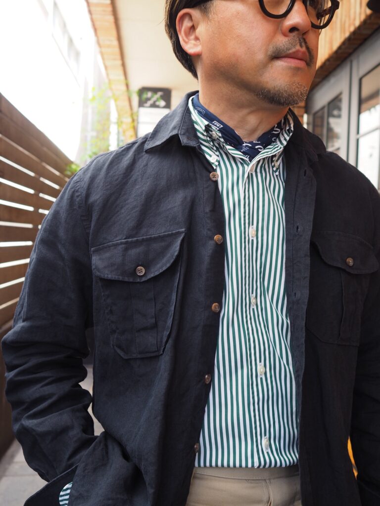 イタリアのリネンシャツとは違いかなり腰のあるシャリ感を感じる生地。着込んでいって馴染んだ時の表情がとっても楽しみです。